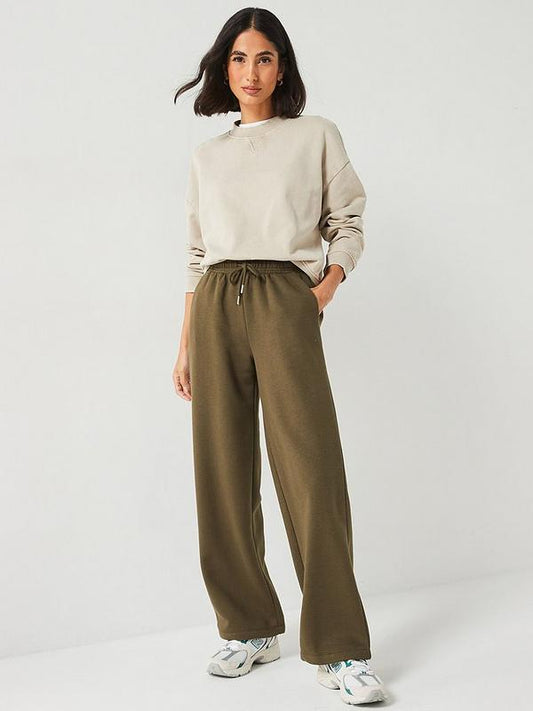 V by Very Curve Side Stripe V-Neck Sweatshirt and Wide Leg Trouser Set- Black
