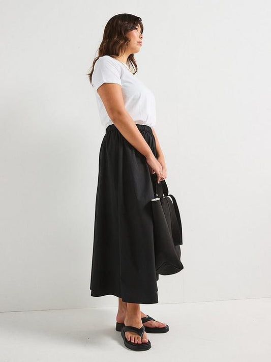 V by Very Curve Cotton Full Midi Skirt - Black