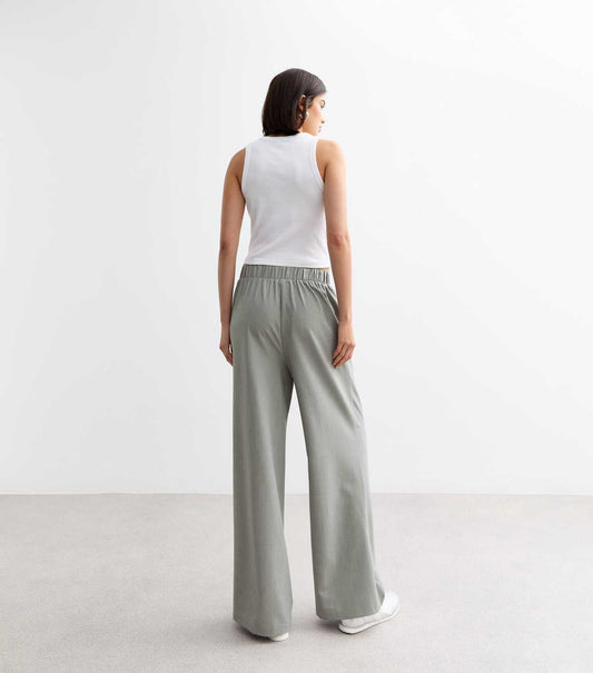 Tall Grey Elasticated Wide Leg Trousers