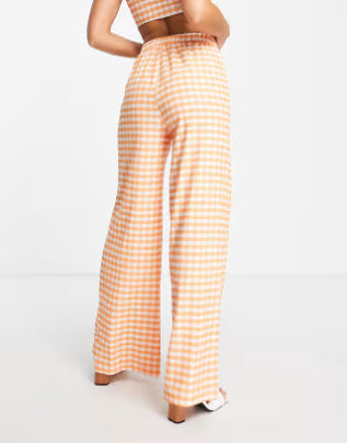 Extro & Vert Elasticated Super Wide Leg Pants in Orange Gingham