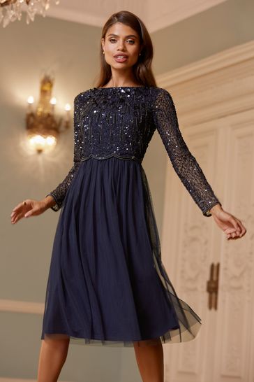 Natalie Embellished Sleeved Bridesmaid Midi Dress