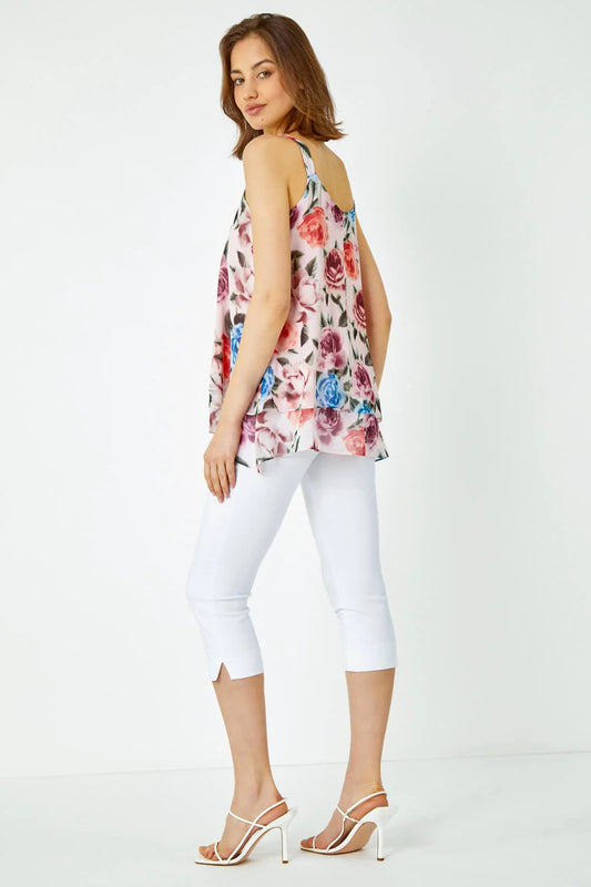 Light Pink Sleeveless V-Neck Floral Double Layer Top