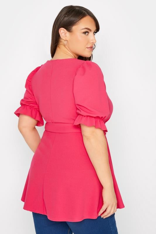 Peplum top with sweetheart neck in hot pink