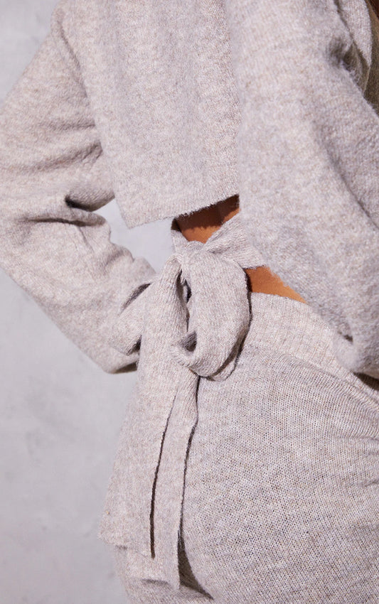 Oatmeal Knitted Tie Back Cropped Jumper