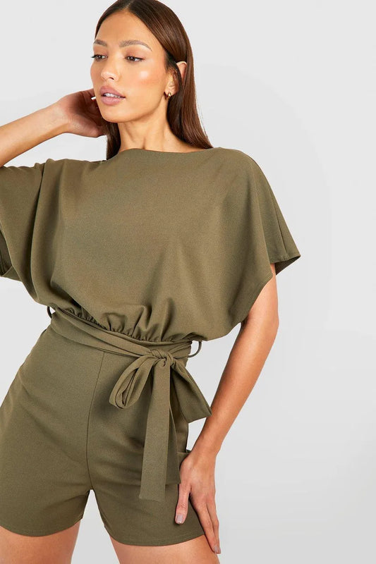 Khaki Tall Short Sleeve Batwing Playsuit