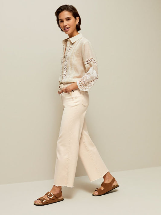 Peach Pink Cropped Wide Leg Jeans