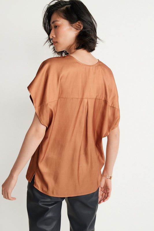 Satin V-Neck Top Camel Brown