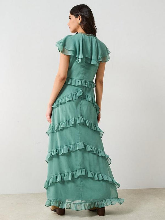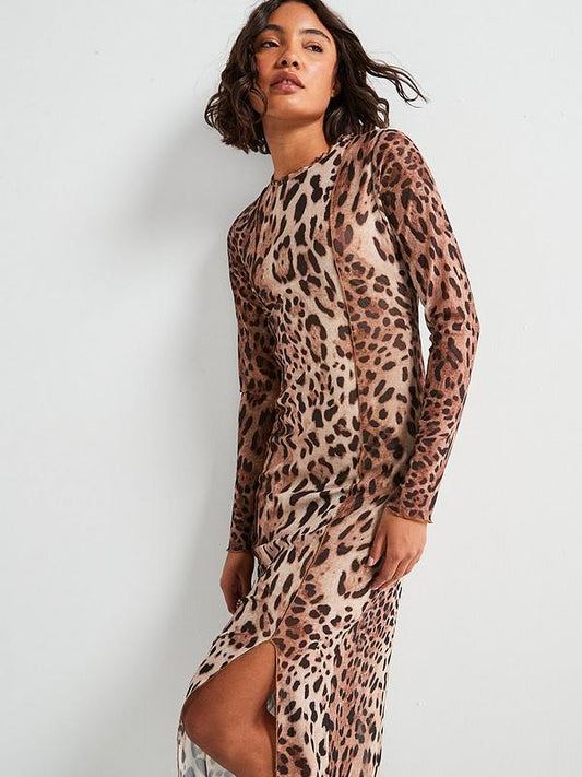 V by Very Puff Sleeve Volume Tiered Midaxi Dress - Animal