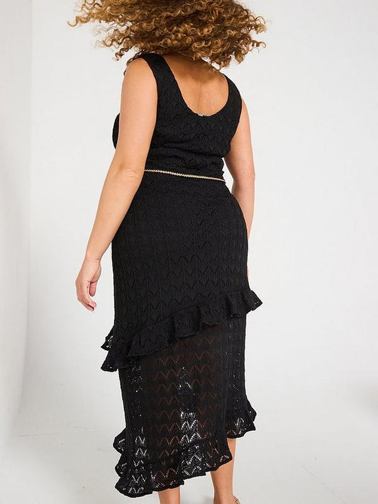 V by Very Curve Crochet Asymmetric Hem Ruffle Dress - Black