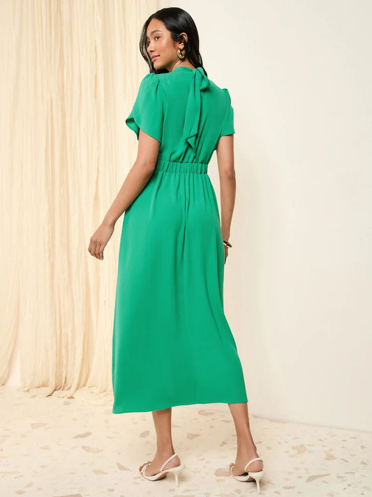 Vendor:Friends Like TheseRegular price ₦39,800.00 NGNRegular priceUnit price / perSale price ₦39,800.00 NGNGreen High Neck Short Sleeve Midi Dress with Bow