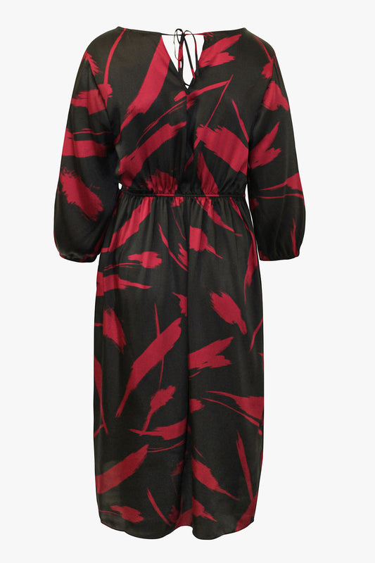 Black High Neck Ruched Drape Jersey Button Detail Midi Wrap Dress