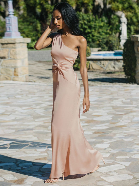 Blush Pink One Shoulder Knot Front Maxi Dress