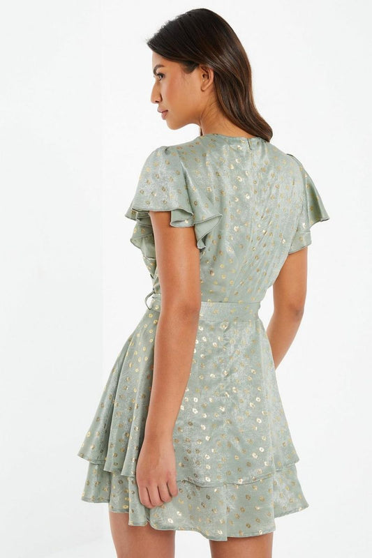 Green Dalmatian Print Midi Wrap Dress
