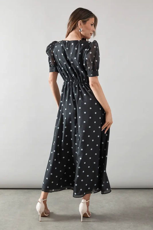 Spot Organza Ruched Front Midaxi Dress