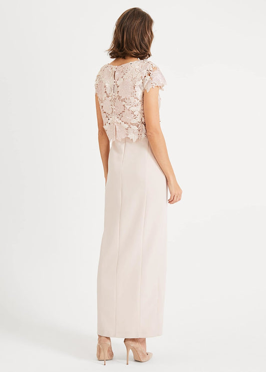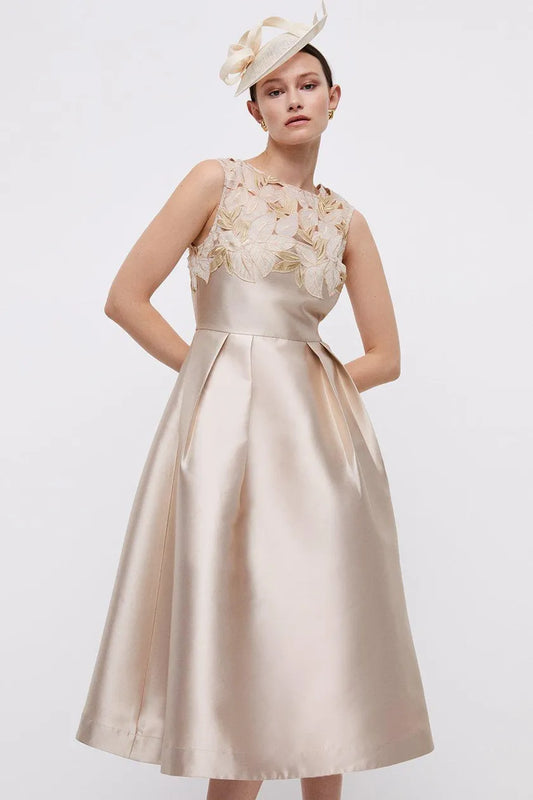 Cutwork Lace Trim Full Skirt Midi Dress And Jacket Set