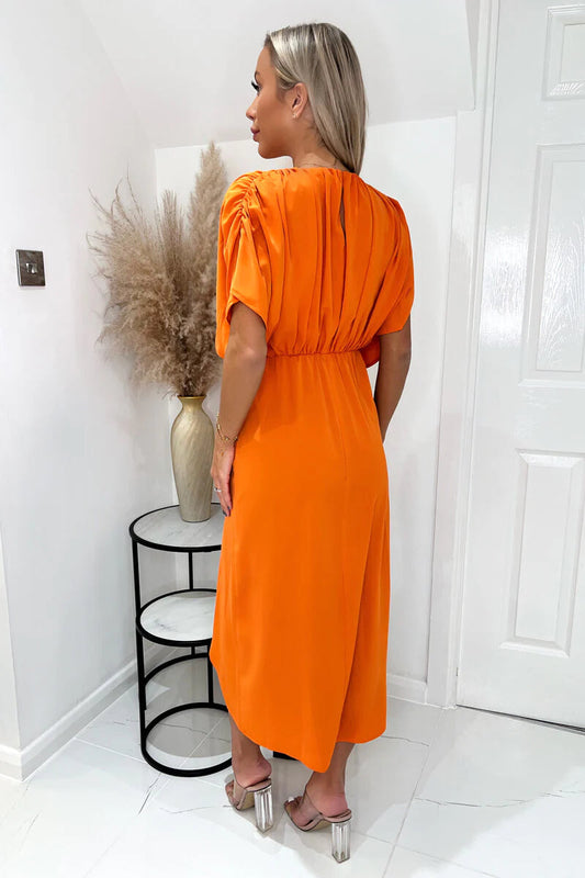 Vendor:AX ParisRegular price ₦35,800.00 NGNRegular priceUnit price / perSale price ₦35,800.00 NGNOrange Batwing Top Wrap Skirt Midi Dress