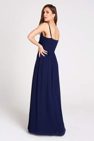 Navy Metallic Sparkle And Sequin Square Neck Bodycon Midi Dress