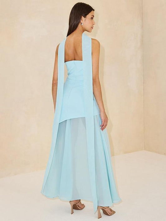 Michelle Keegan Bandeau Dress with Neck Scarf - Blue
