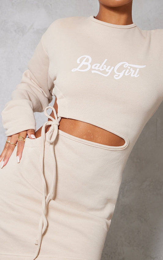 Stone Ruched Side Sweatshirt Dress