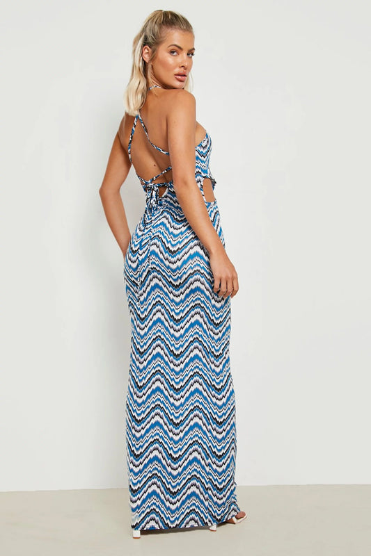 Striped Open Back Strappy Maxi Dress