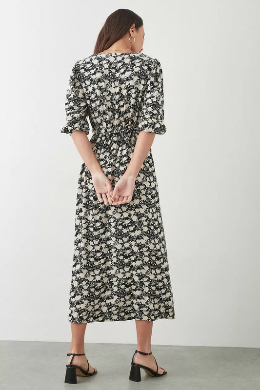 Tall Mono Ditsy Floral Button Through Midi Dress
