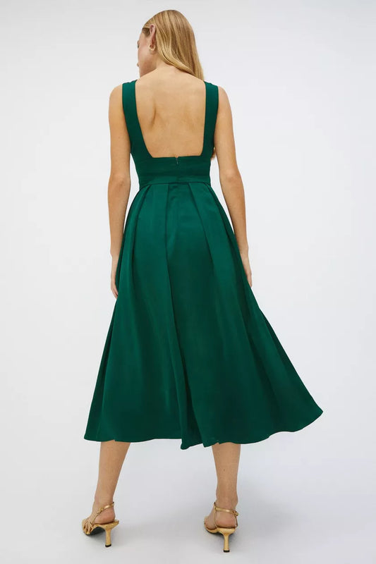 Full Skirted Satin Midi Dress Green