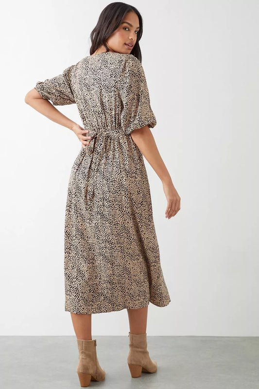 Leopard Print Button Through Midi Dress