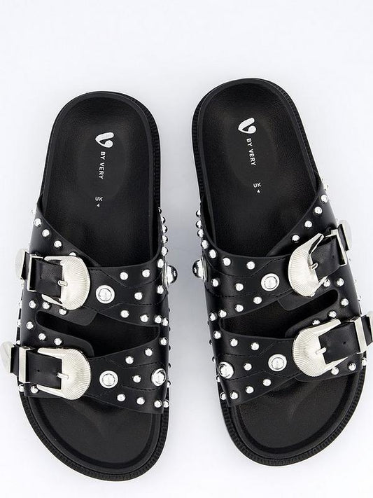 Truffle Collection Heart Trim Chunky Women's Sandals In Black