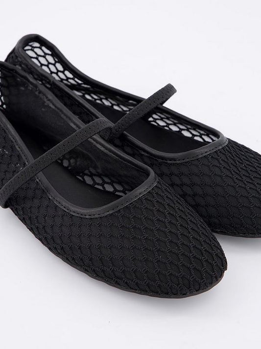 V by Very Mesh Round Toe Ballerina Shoes - Black