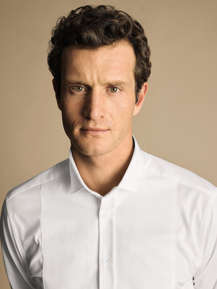 Designed with a new, sophisticated turnback placket. The body fabric is crafted from 100% 2-ply Supima cotton for a luxurious, smooth feel, in a lightweight poplin weave, while the split back yoke allows for easy movement. It also has traditional evening shirt features, including a bib front in a customary Marcella weave and extra button holes for replacing the buttons with studs.