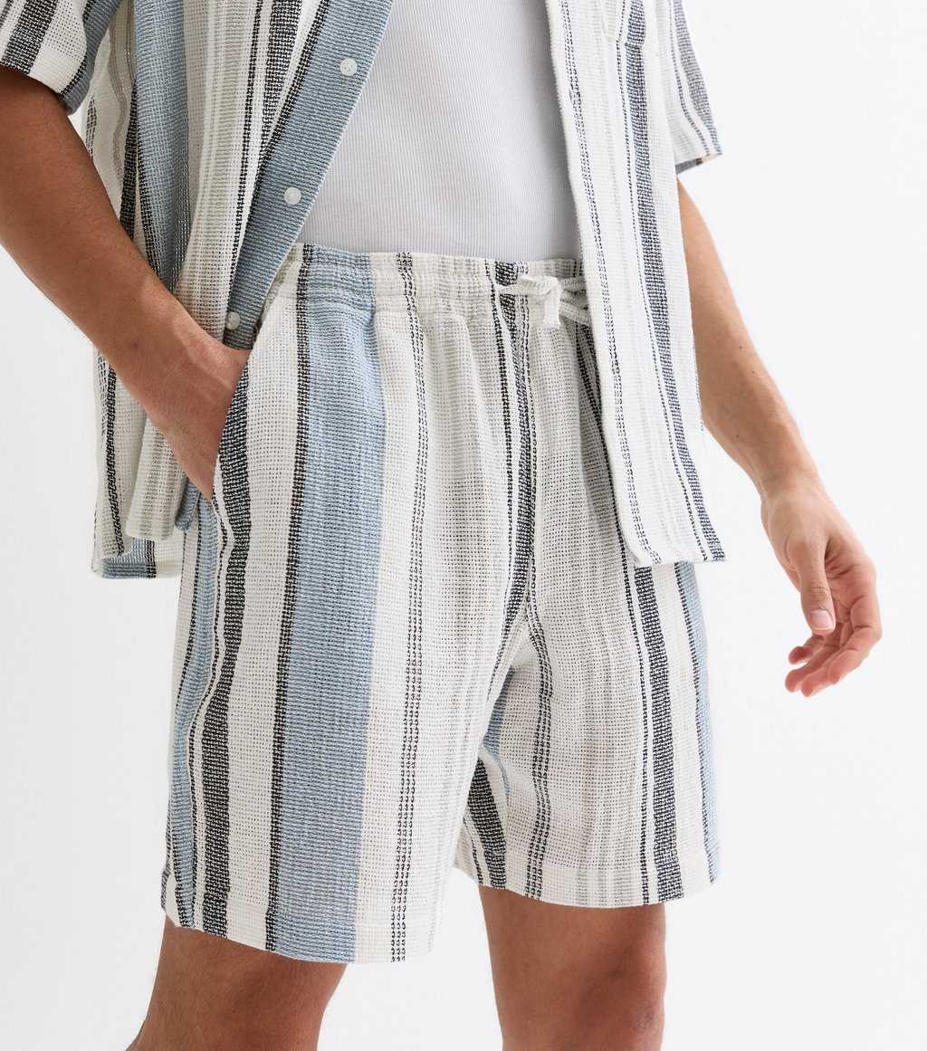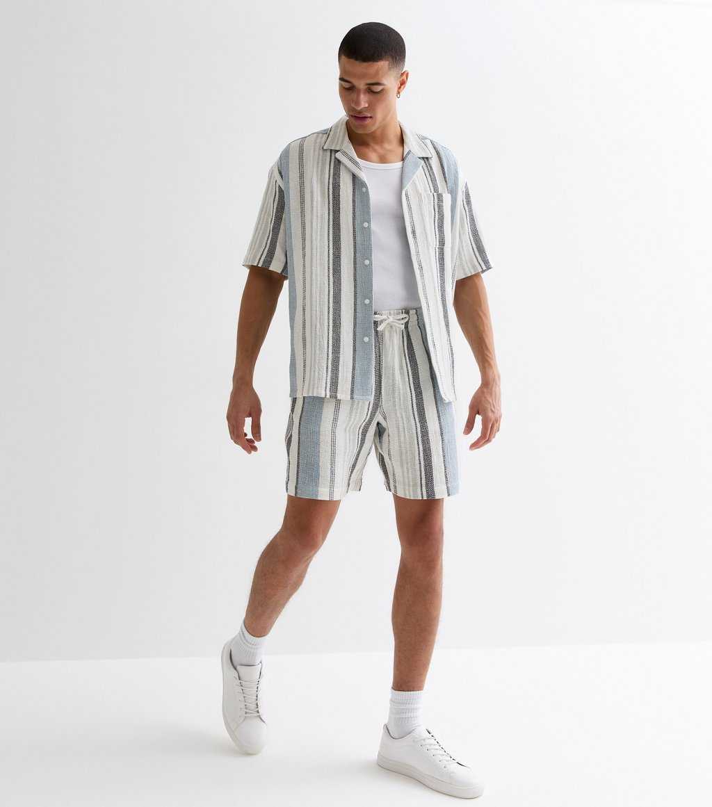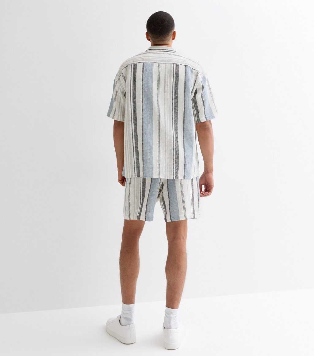 Blue Stripe Relaxed Fit Textured Cotton Shirt And Shorts Set