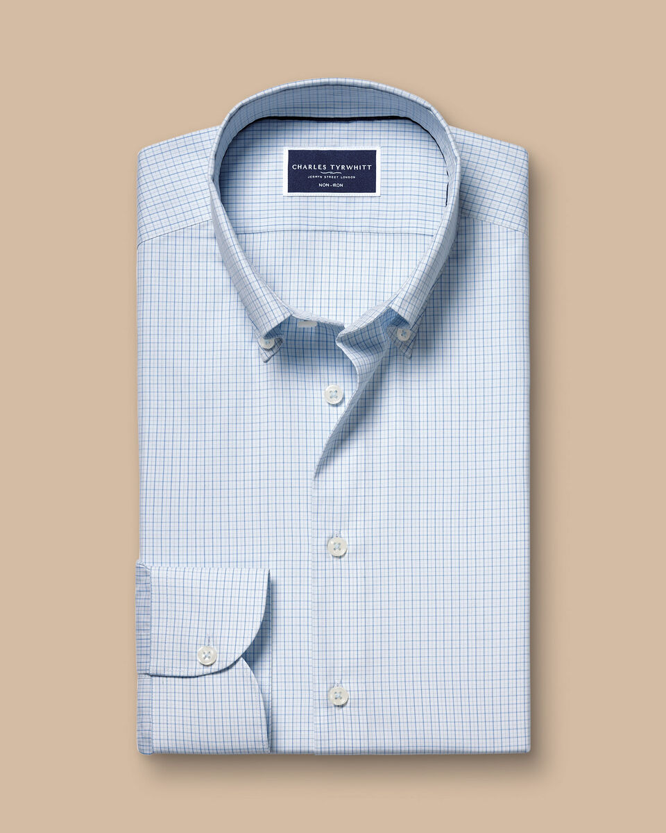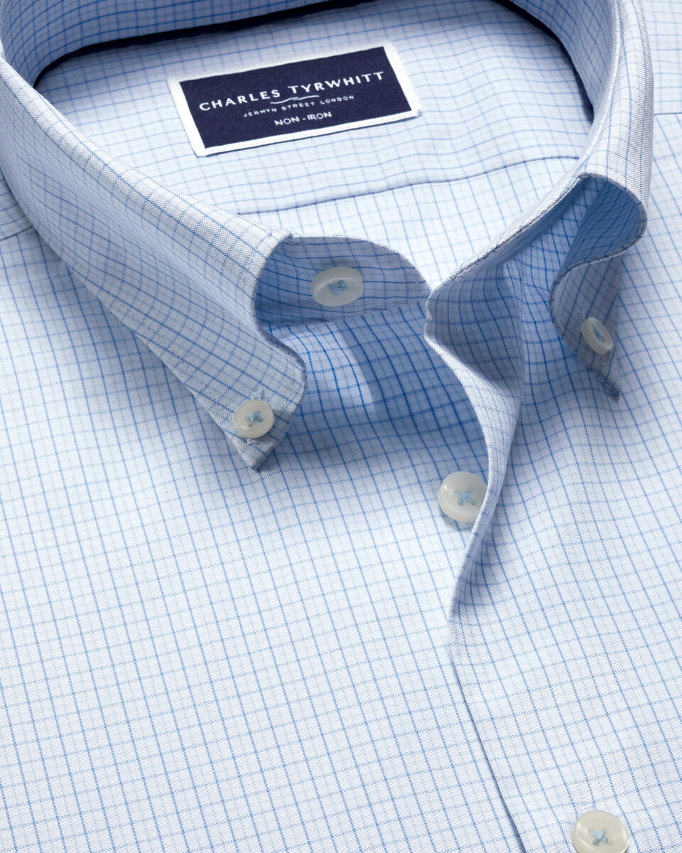 Button-Down Collar Non-Iron Oxford Fine Check Shirt - Light Blue