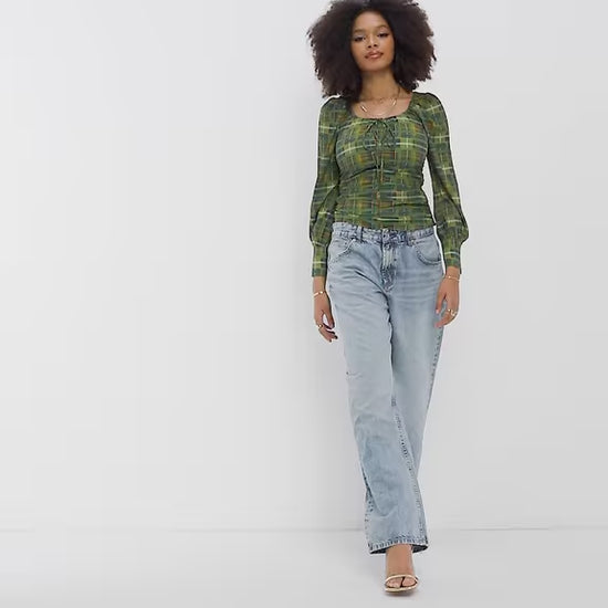 Tops by Glamorous Waist-up dressing Check design Scoop neck Blouson sleeves Tie front Regular fit