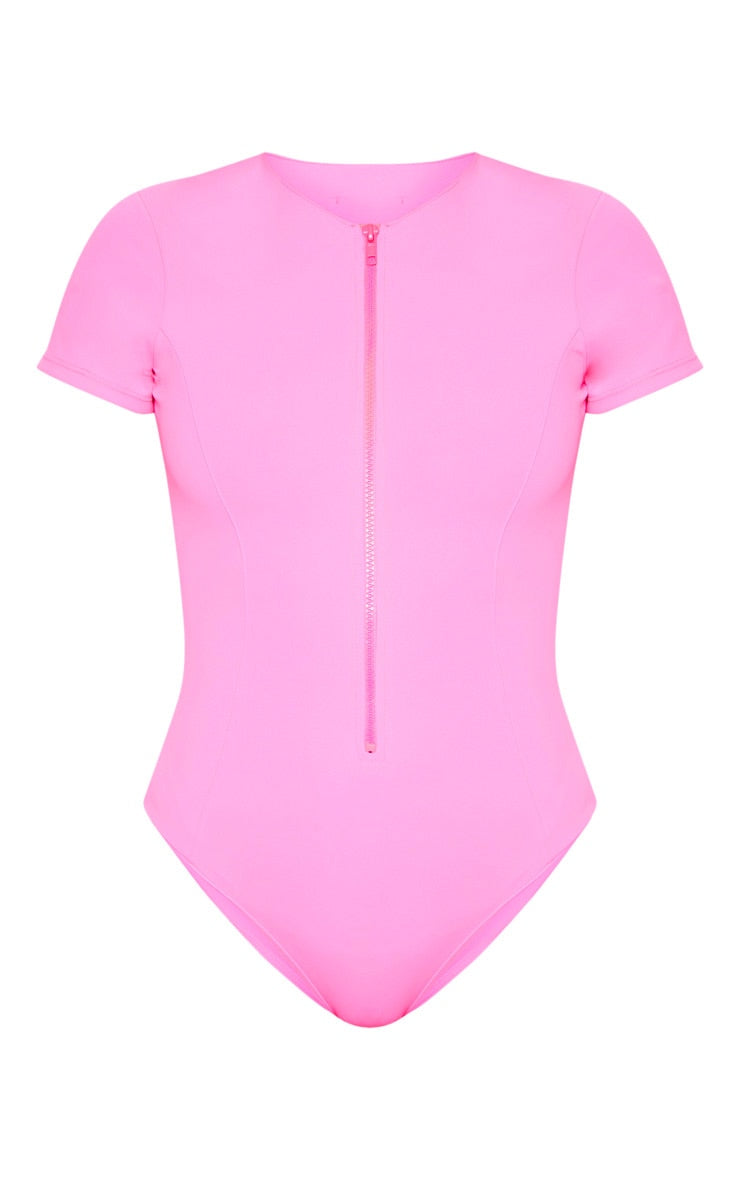 Hot Pink Scuba Zip Up Swimsuit