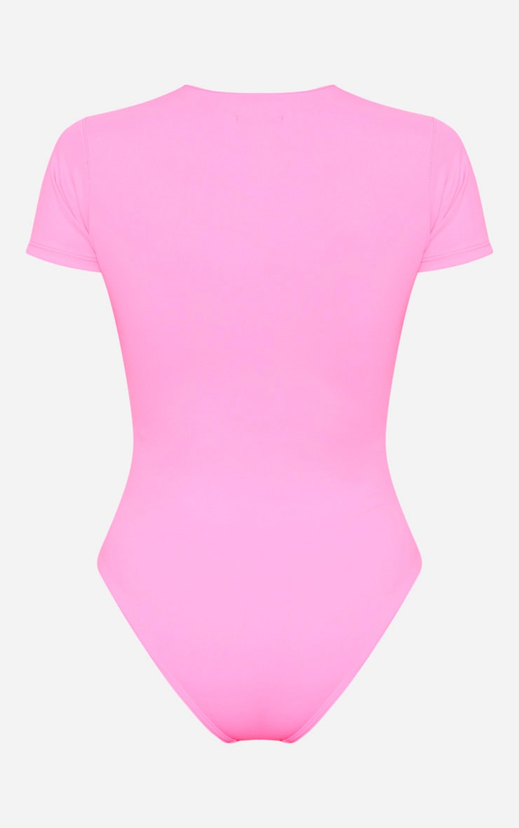 - Get maxing out your holiday look with this swimsuit, featuring a hot pink scuba material with a zip up front design. We love this styled with some killer shades for ultimate glam this season.