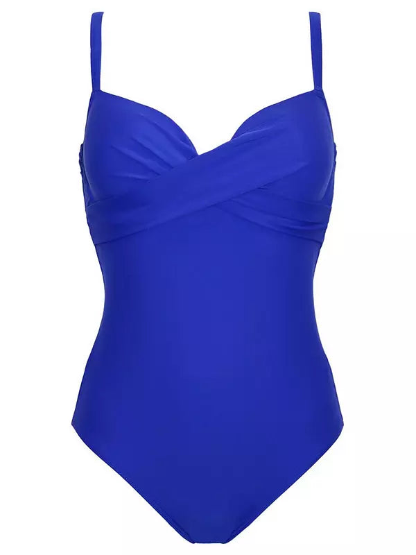 Lightly Padded Underwired Twist Front Tummy Control Swimsuit - Blue