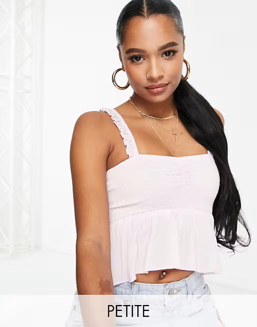 Crafted from eco-friendly fabric, this petite shirred tie top features a textured finish, adjustable tie detail, and a flattering fitted silhouette. A versatile piece that pairs effortlessly with jeans, skirts, or tailored trousers for day-to-night style