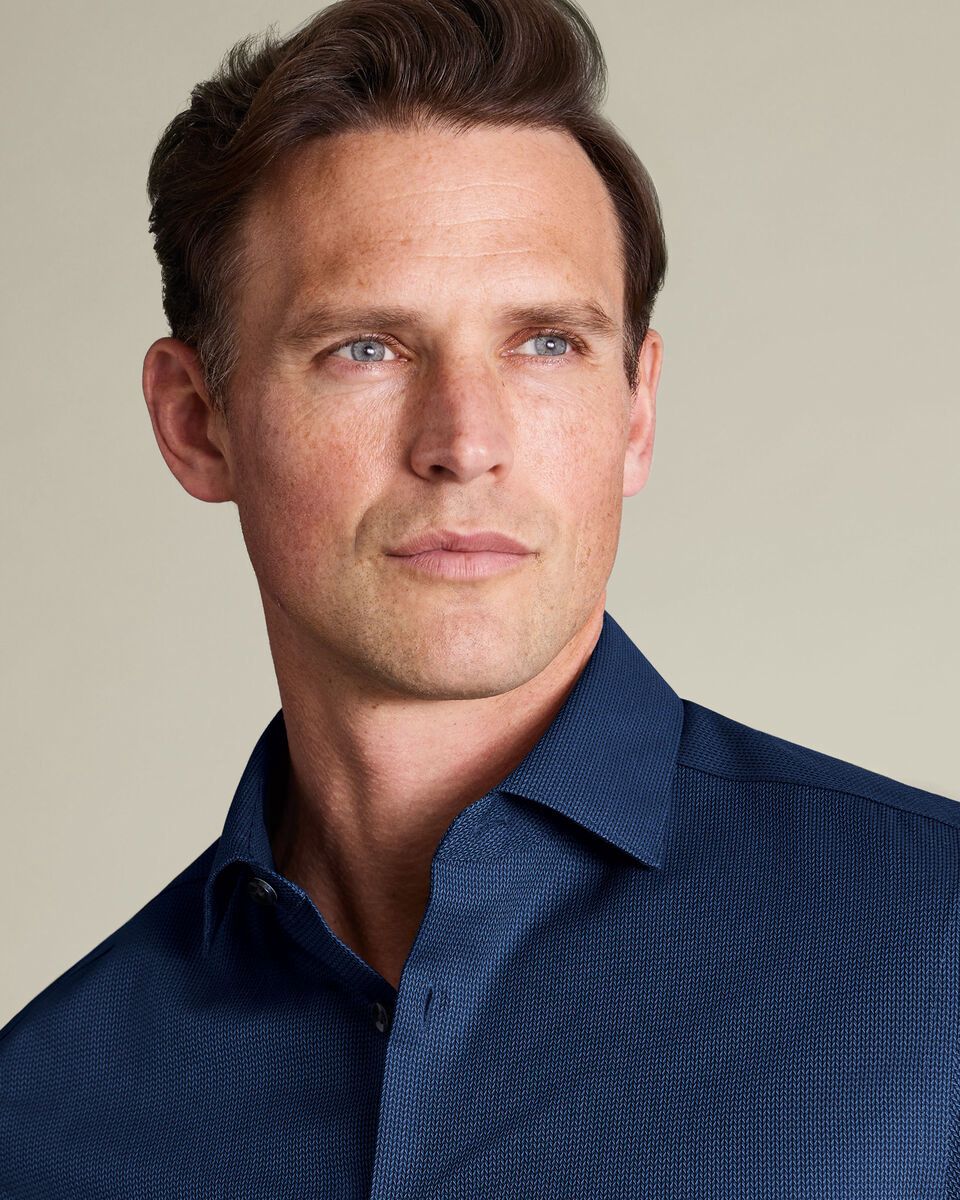 Non-Iron Stretch Chevron Texture Slim Fit Shirt - Denim Blue
