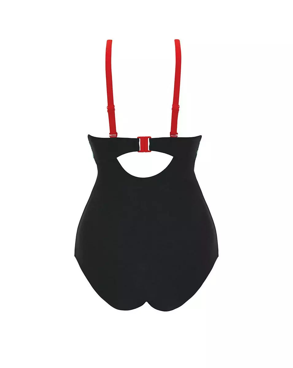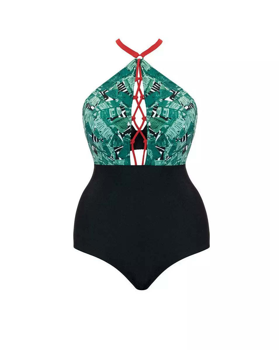 Padded plunge sits under high neck plunging outer. Multiway straps. With 'Xtra Life Lycra' for long lasting shape retention and resistance to heat, chlorine and sunscreen.
