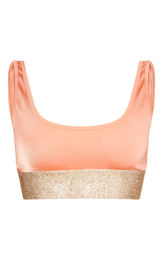 Have all eyes on you at the poolside with these bikini top. Featuring a peach material with diamante detailing. Style these with the matching bikini bottom and your fave sunglasses to complete the look.