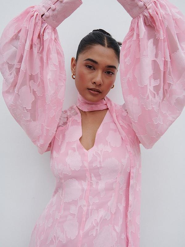 Pretty Lavish Sadie Jacquard V Neck Dress - Pink