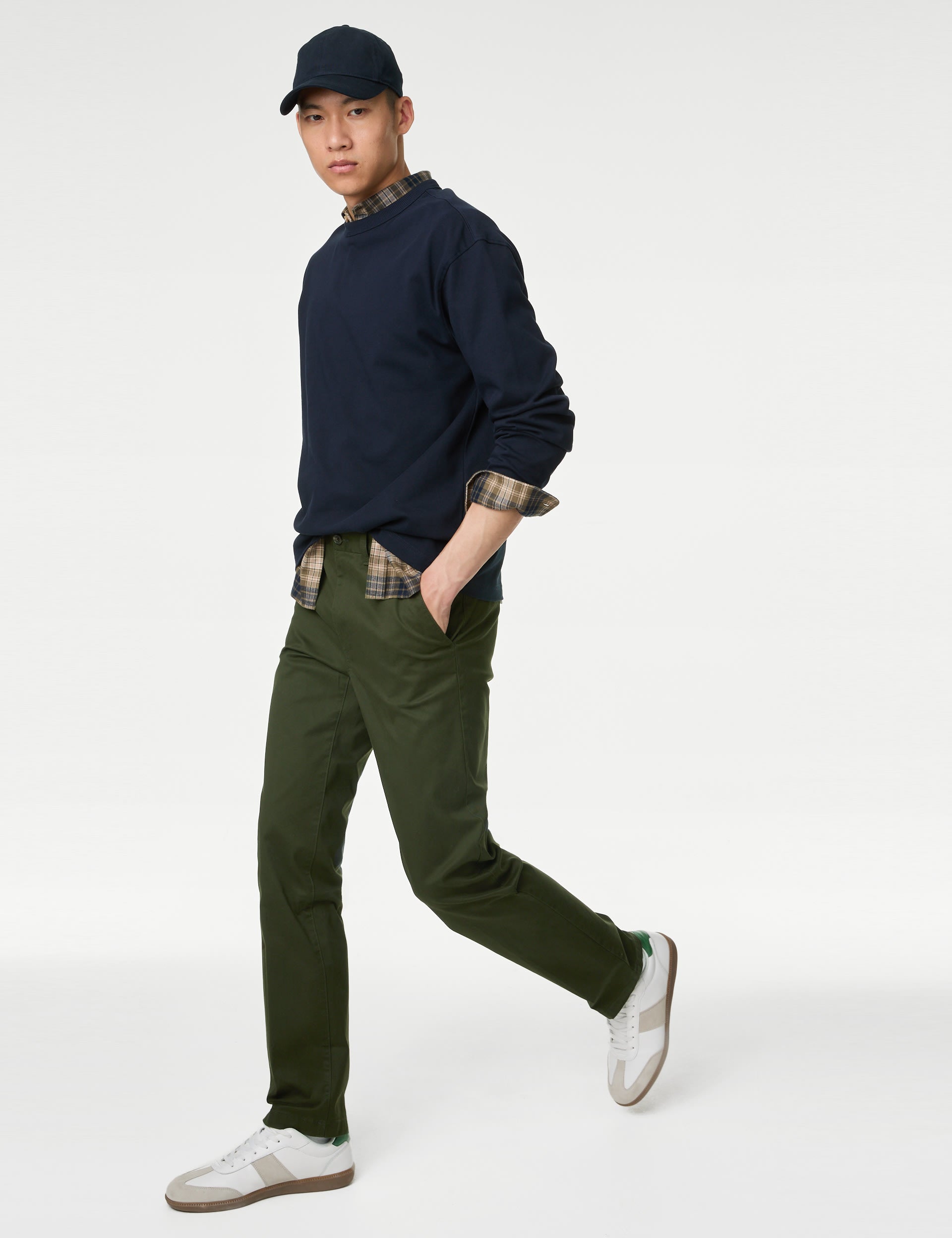 These cotton-rich twill chinos are designed to have heavier weight for a crisp, luxurious feel. Made in a regular fit with added stretch for comfort. Features our innovative Active Waistband that moves with you. An easy button-and-zip fastening offers a secure and practical finish. M&S Collection: easy-to-wear wardrobe staples that combine classic and contemporary styles