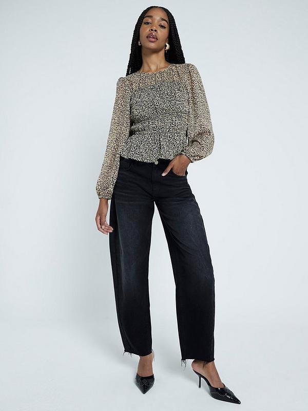 River Island Brown Beige Printed Shirred Chiffon Blouse