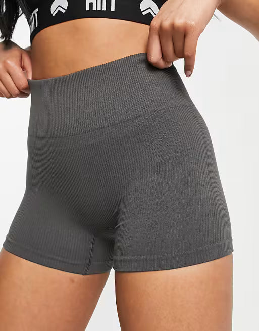 Push your limits in style with these seamless rib shorts in charcoal. Designed with a body-hugging fit and stretch fabric for maximum comfort, they’re perfect for workouts or casual athleisure looks.