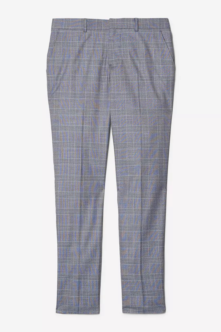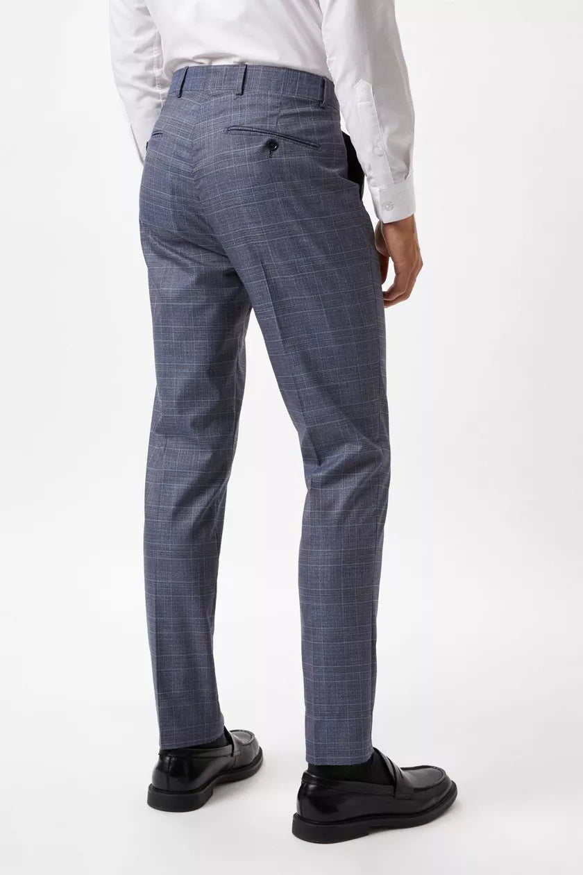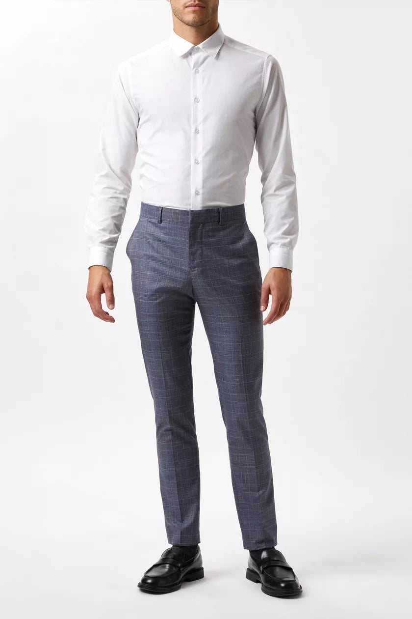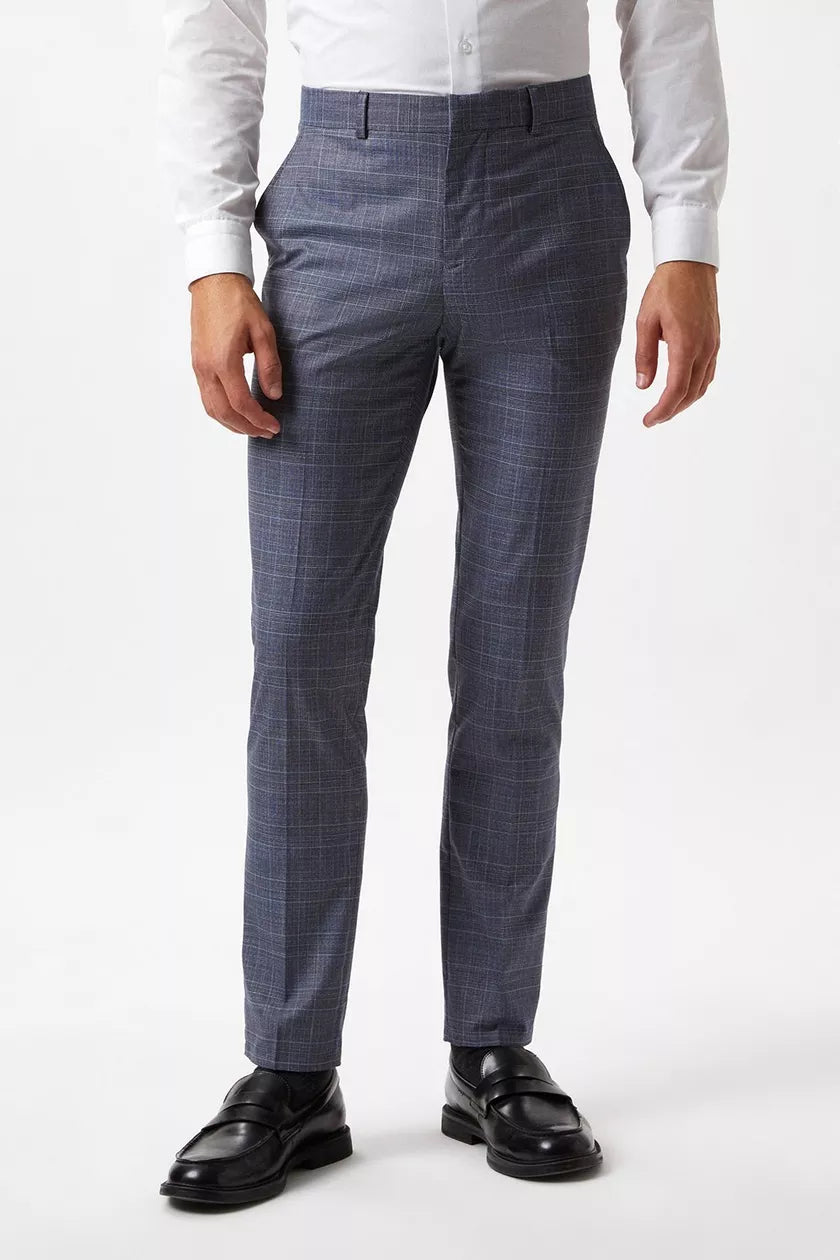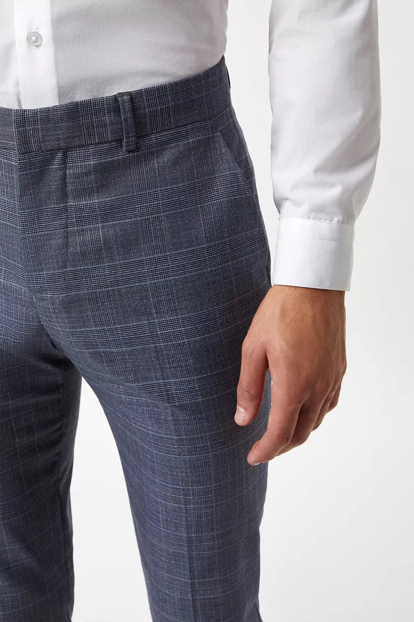 Skinny Fit Denim Wedding Check Suit Trousers Blue