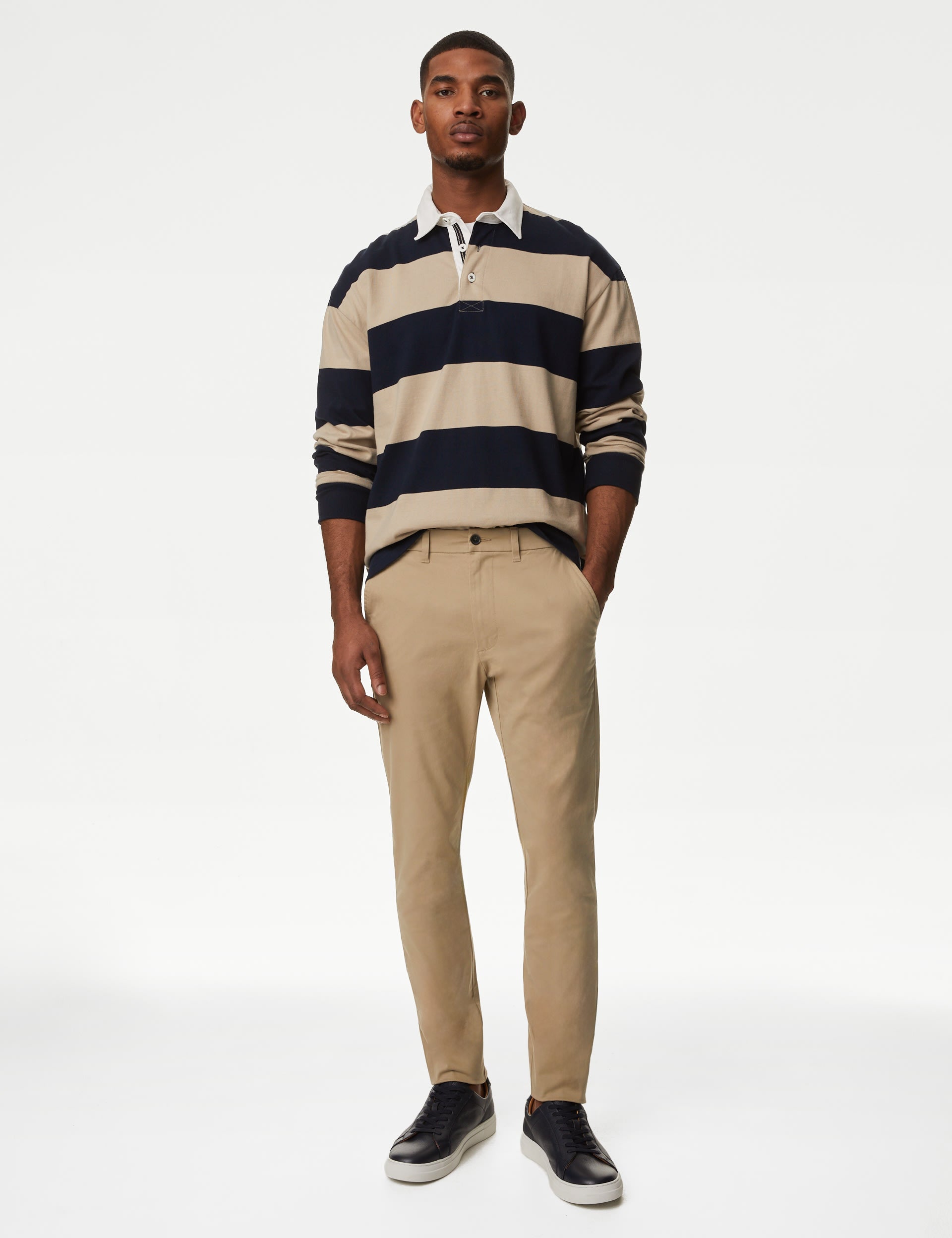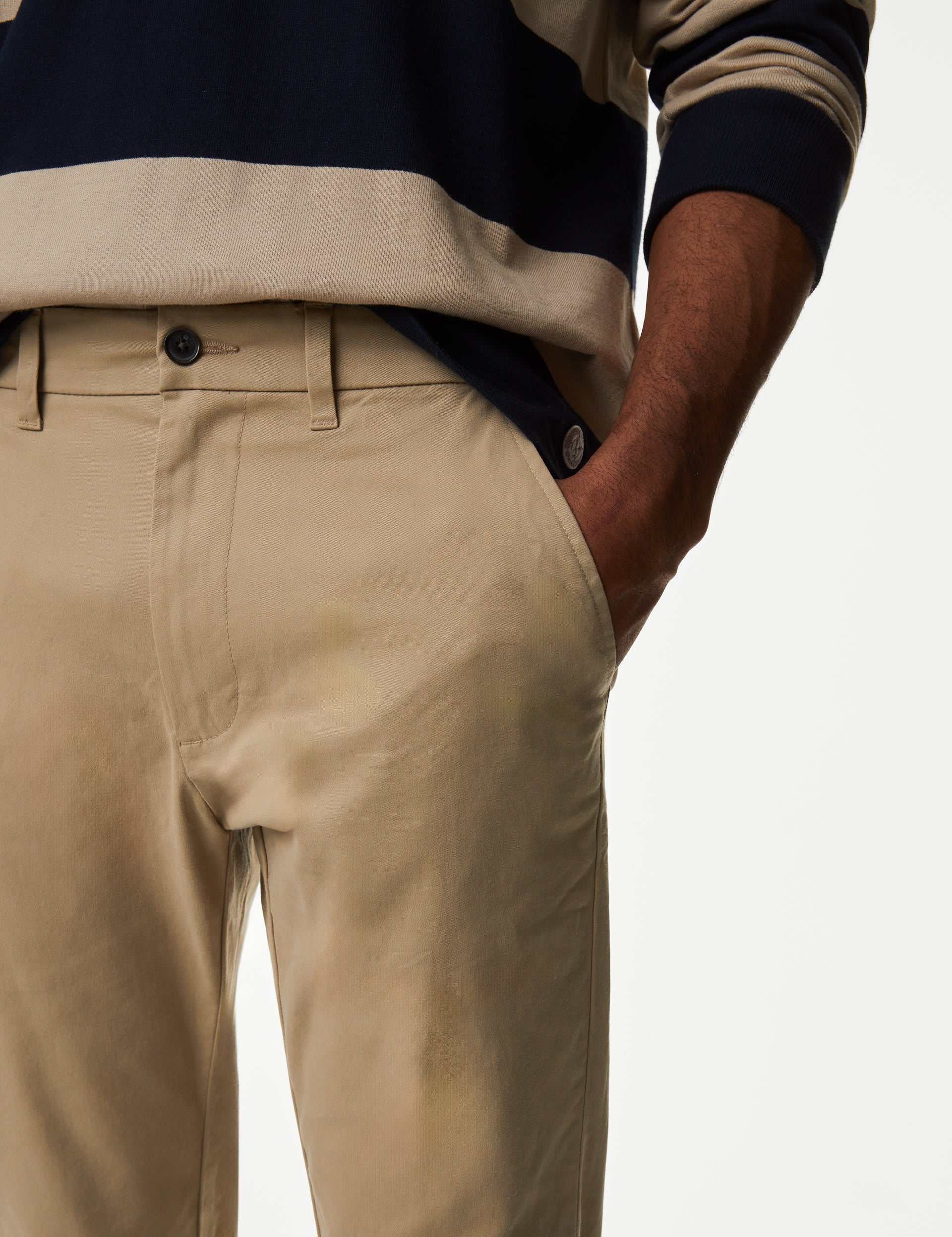 Look smart while still looking casual with these slim fit chinos, perfect for wearing with all your shirts, polos and knitwear. These contemporary chinos for men have been made from a comfortable cotton rich material with a rich colour wash and added stretch