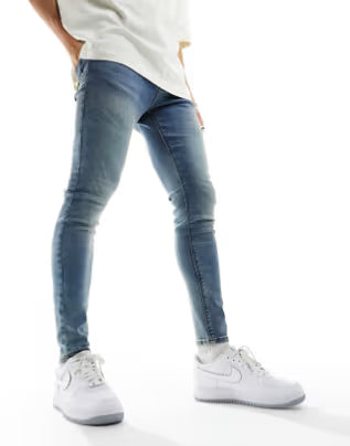 These spray-on jeans feature a super-skinny fit with power stretch fabric that contours to your shape without compromising comfort. Finished in a tinted mid-wash blue, they’re the perfect balance of edge and everyday style — ideal for dressing up with a shirt or down with a hoodie.