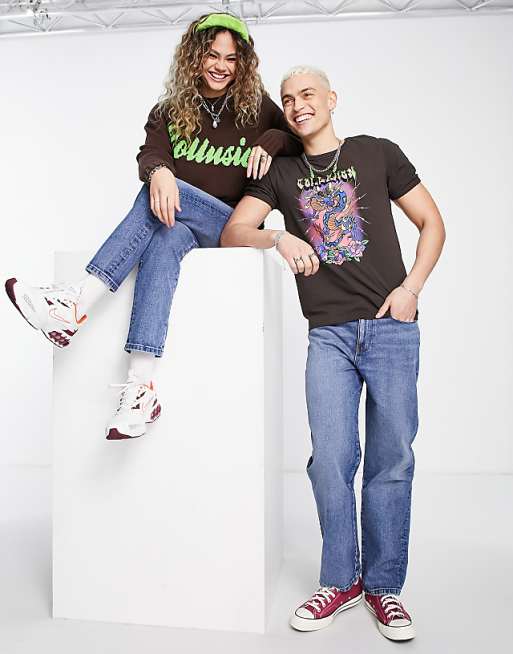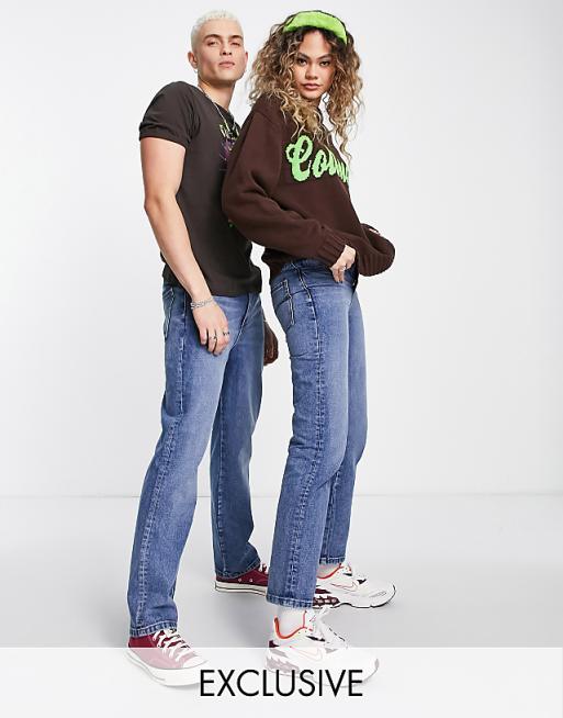 Jeans by COLLUSION Exclusive to ASOS High rise Belt loops Five pockets Straight fit Unisex style