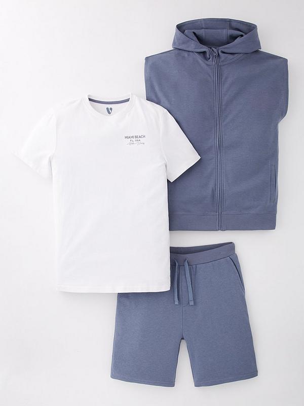 V by Very Boys Sleeveless Hoodie And Short T-Shirt Set - Blue