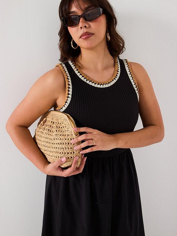 V by Very Curve Puffball Hem 2 in 1 Midi Dress - Black